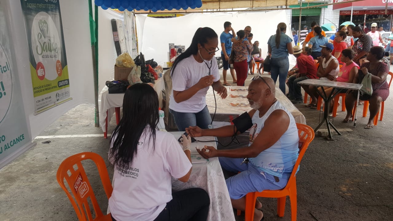 Além das doações, as pessoas ganharam brindes e puderam aferir a pressão arterial e fazer o teste de glicemia com a equipe que esteve presente.