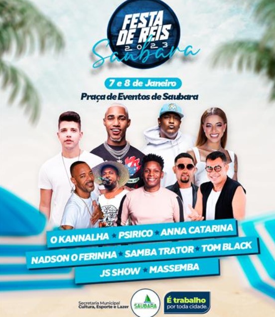 Dias 7 e 8 de Janeiro de 2023 temos um encontro marcado na melhor Festa de Reis de todos os tempos, a grade de atrações acaba de ser divulgada pela Prefeitura Municipal de Saubara, através dos seus canais oficiais de comunicação, confira: