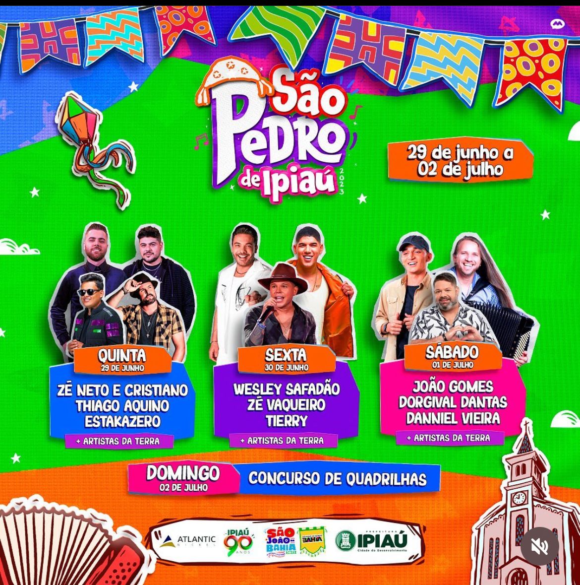 CONHEÇA A GRADE DE ATRAÇÕES DO SÃO PEDRO DE IPIAÚ