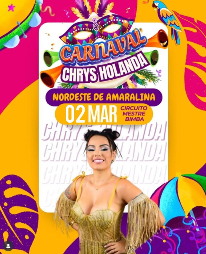 Chris Holanda, que já é de casa e arrasta multidões por onde passa, está pronta para fazer o chão tremer com seu repertório envolvente, carisma e energia contagiante. Seja para sambar, cantar junto ou simplesmente curtir a vibe única do Carnaval no Nordeste de Amaralina, este é o evento que você não pode perder!