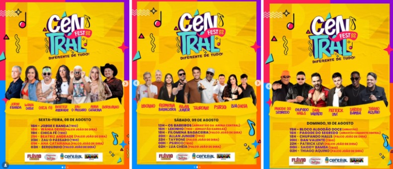 Nomes como Psirico, Tayrone, Thiago Aquino, Pagde do Segredo, Anna Catrina, Lekkinho, Filomena Baceira, Dan Valente, Patrick Levi,estão confirmados, garantindo shows que prometem fazer história. Prepare seu coração e sua energia, o Central Fest 2025 está chegando para celebrar a vida e a cultura de Central em grande estilo!