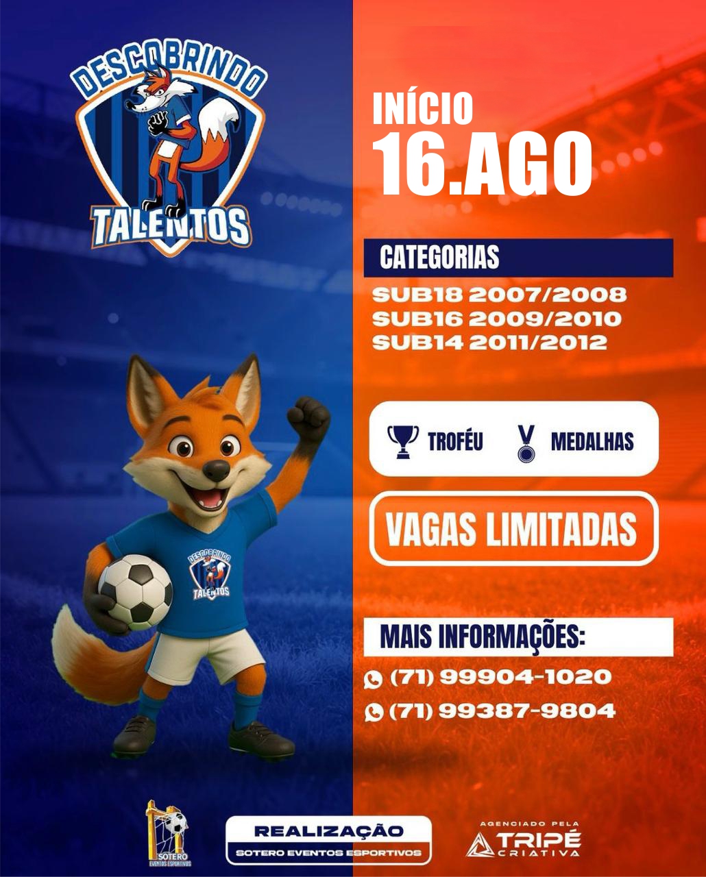 A realização é da Sotero Eventos em parceria com a Central Única da Cidadania, e conta com o apoio do Governo do Estado da Bahia, por meio da SUFOTUR. A expectativa é de que a Copa Descobrindo Talentos seja mais um marco no calendário esportivo, incentivando o esporte como ferramenta de inclusão e transformação social.