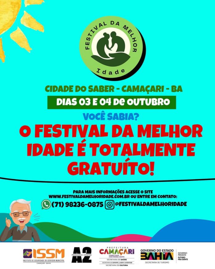 Nos dias 3 e 4 de outubro, Camaçari será palco de um evento especial voltado à valorização da terceira idade. O Festival da Melhor Idade acontece na Cidade do Saber e promete reunir idosos de diversas regiões em uma programação que celebra a vitalidade, a cultura e o convívio social.