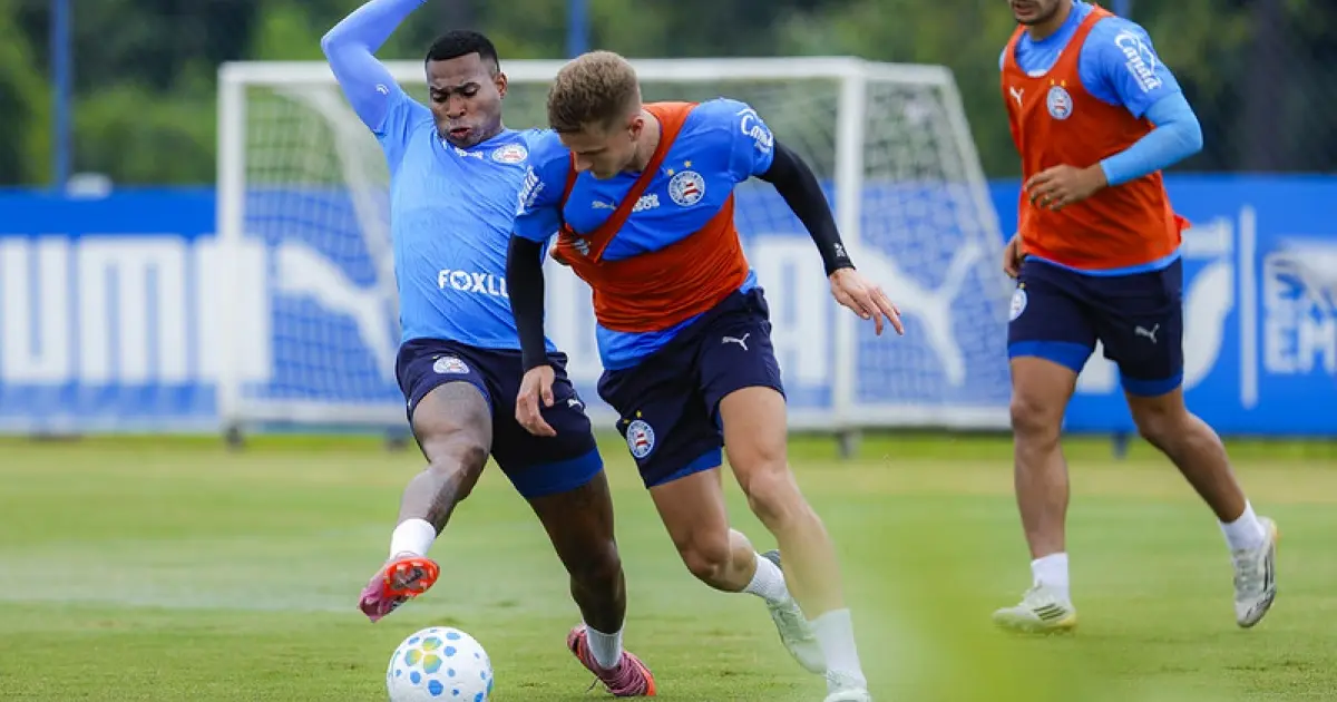 O dia começou com os jogadores assistindo a um vídeo de análise no CT, com os erros e acertos do clássico Ba-Vi disputado no último final de semana, válido pelo Campeonato Baiano. Na sequência, no campo 2, o grupo participou de um treinamento técnico em espaço reduzido, com enfrentamento entre equipes, priorizando intensidade, tomada de decisão e dinâmica de jogo.