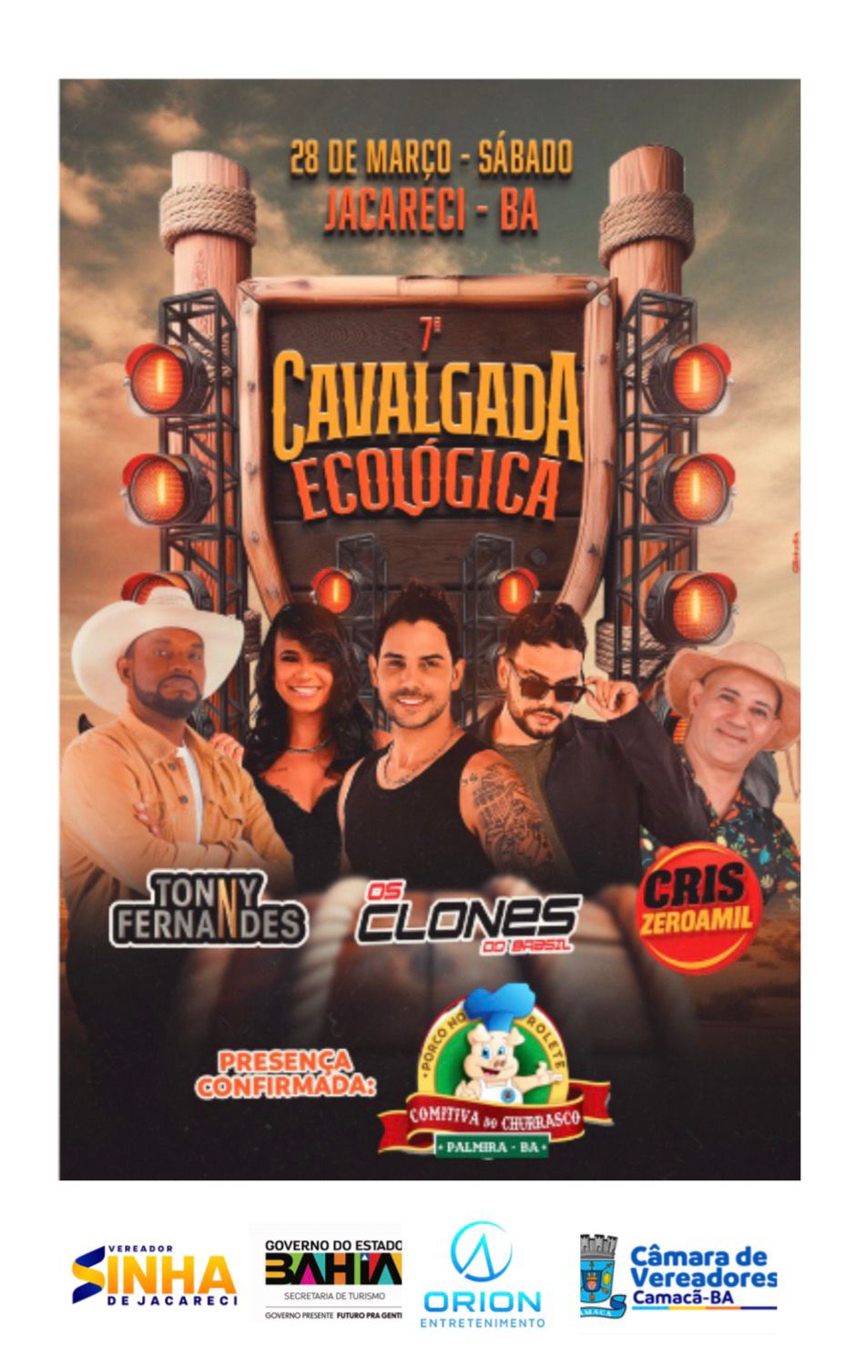 A realização da 7ª Cavalgada Ecológica conta com a organização da Orion Entretenimento e o apoio institucional do Governo do Estado da Bahia, por meio da Secretaria de Turismo, além da Câmara de Vereadores de Camacan e do Vereador Sinha de Jacareci. Com essa estrutura, o evento reafirma sua importância para o turismo local e para a valorização das tradições do campo na região.